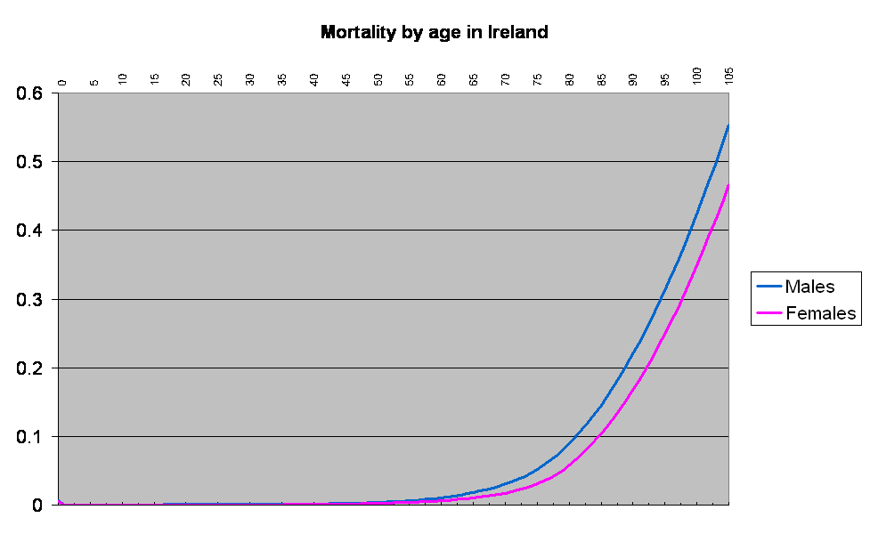 This table is derived from the Irish Life Tables 2001-2003. (CSO) Double-click on the image to get a full view.