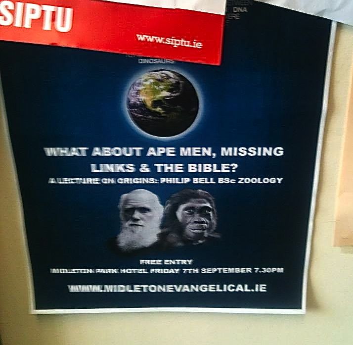 I also wouldn’t put too much faith in the Irish education system to put people right about origins. I’m not trying to bash our system, but evolution only gets so much time on the syllabus because there’s a lot to cover. If you’re bringing up kids in a religious group and spend hours and hours telling them about how evolution’s a lie, then a half hour lesson from their biology teacher won’t be enough to dislodge that idea from their brains.