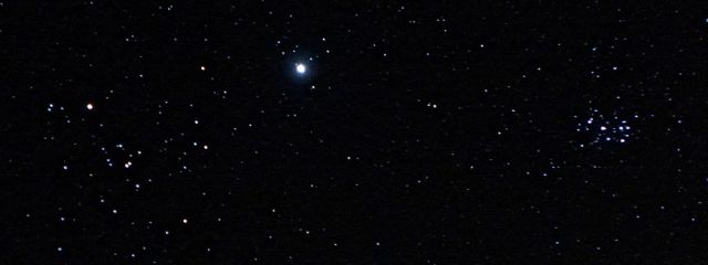 This photo was taken using Shutter Speed Priority. Using a tripod, I set the shutter speed to 8 seconds and pointed the camera at one of my favourite parts of the sky. As a complete novice, I’m quite happy with the outcome. The photo, incidentally, was of the Hyades in Taurus, the planet Jupiter in the middle, and the Pleiades to the right.