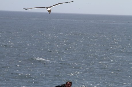 The Great Saltee is home to large colonies of gannets, razorbills, guillemots and kittiwakes. Puffins, coromorants, shags, fulmars, choughs, herring gulls and black-backed gulls were also commonplace around the island. The largest colony of gannets is at the far western end of the island and, incredibly, you can walk right up beside these large birds. They appear unperturbed by humans, despite the fact that they are all looking after chicks of various different ages and sizes. Not so the black backed gulls. Come close to a nest and you will be swooped on by an anxious parent until you leave the immediate area.