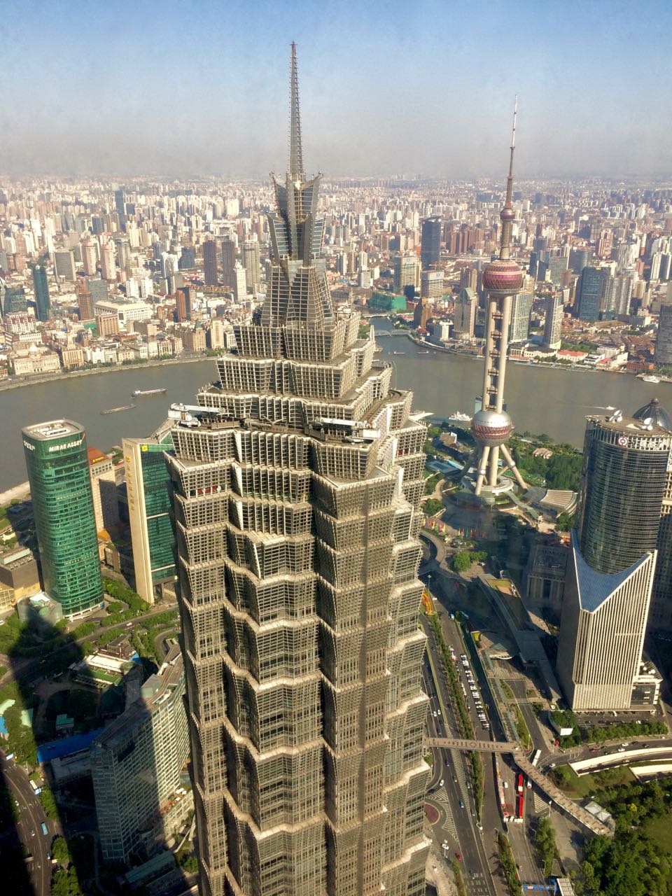 If you have the stomach to watch the video, did you see the skyscraper far below it? The one that looks like a bottle opener? That’s the Shanghai World Financial Centre, “only” the sixth tallest skyscraper in the world. I’m staying on the 83rd floor and as the photos from my window will testify, it’s already pretty high.